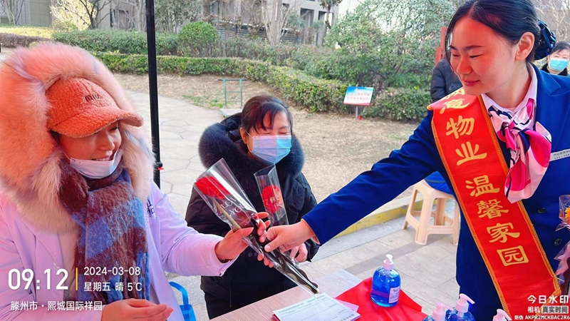 熙城国际诚园、东城名景、人和蓝湾、滕投华府、大同印象多个物业服务中心开展了“温馨满溢、鲜花献女神”活动,为女性业主和住户们献上了节日的鲜花,表达对她们的敬意和祝福。