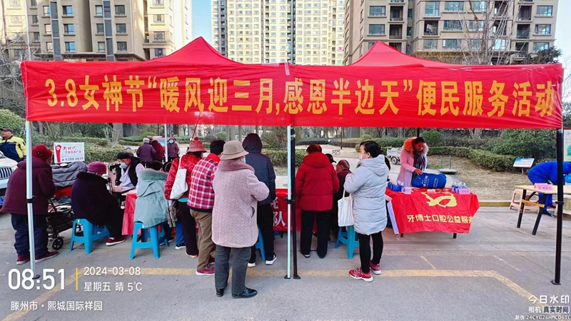 熙城国际金园物业服务中心组织了“暖风迎三月、感恩半边天”便民服务活动,为女性业主和住户们提供免费理发、义诊、法律咨询等,同时为小区孤寡老人打扫卫生和健康检查,让她们感受到物业的温暖和关爱。