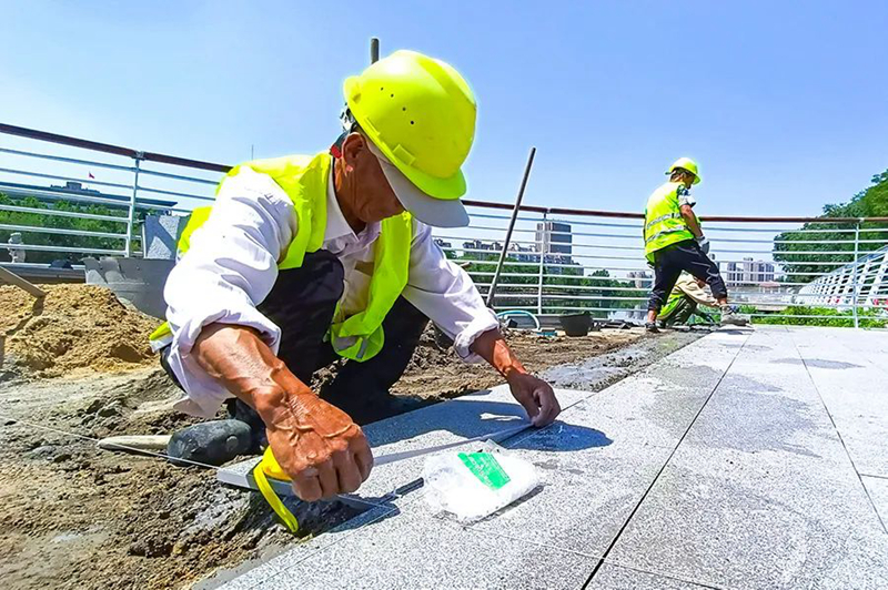 同时,博诚路桥公司对原有缺失的地面植被进行了补植,将原有木质护栏更换为更结实耐用的锌合金护栏,铺设了透水混凝土路面,对无障碍设施也进行了改造提升,更方便无障碍人士使用。目前该工程已基本完工,进入收尾阶段。